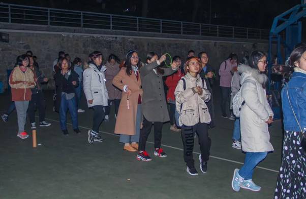 大家一路上有说有笑,其乐融融。到了振华楼之后,我们今年的荧光夜跑新设的环节——有奖问答就开始啦!想得到体育部为大家准备的各种各样的小礼物?那就看看以下的问题你能回答对几个哦~以下是题库不完全摘录:
