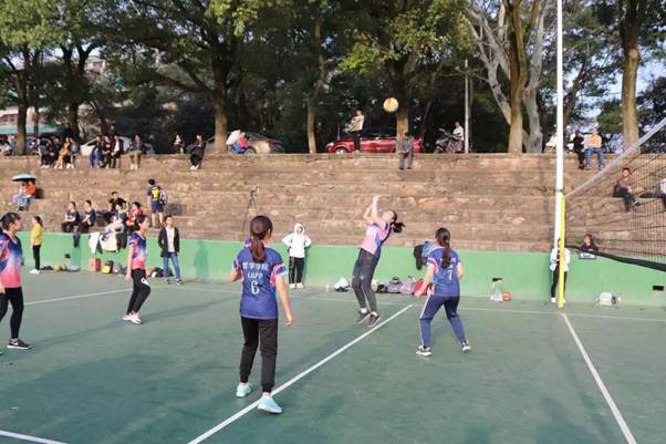 哲院女排一度士气高涨,对手文院也奋力追赶,无奈最后文院反超,超过哲院再下一城。