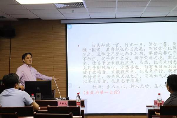 在讨论“水浅而舟大”的时候,吴院长特意总结了庄周“大作为大准备”的相对性道理。授课过程中,吴院长偶尔插入一些现代新奇的事例与异闻,并且在结合生活实际时用风趣的,接地气的语言进行讲述,吸引了同学们的注意力,达到了极好的效果。