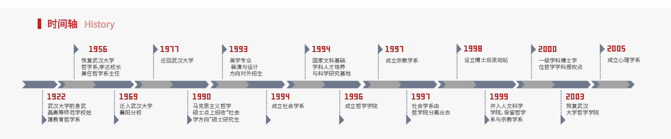 1922年设立教育哲学系 1988年两个国家重点学科(马克思主义哲学,外国哲学) 1926年更名为哲学系 1994年国家文科基础学科人才培养与科学研究基地 1938年随校迁至四川乐山 1996年成立海角网